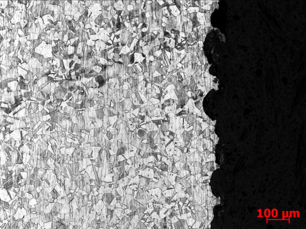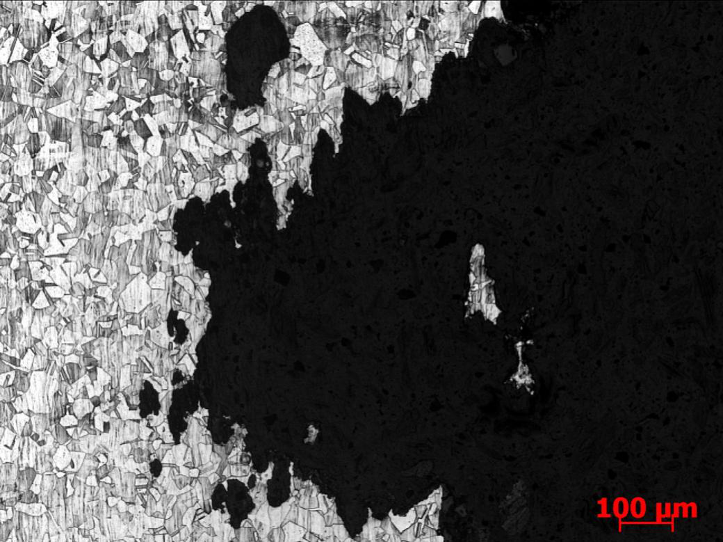 (4)送檢管子橫截面及縱截面組織均為奧氏體+孿晶,晶粒度6.0級。未見晶粒不均、有害相析出等缺陷。