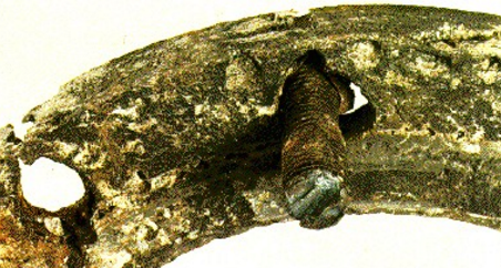 用鋼制鉚釘固定銅板--小陽(yáng)極-大陰極,鋼制鉚釘被強(qiáng)烈腐蝕