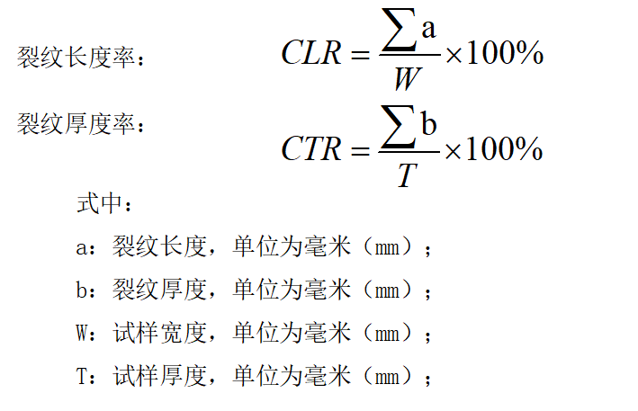 試驗(yàn)結(jié)果評(píng)定;裂紋敏感率CSR、裂紋長(zhǎng)度率CLR、裂紋厚度率CTR