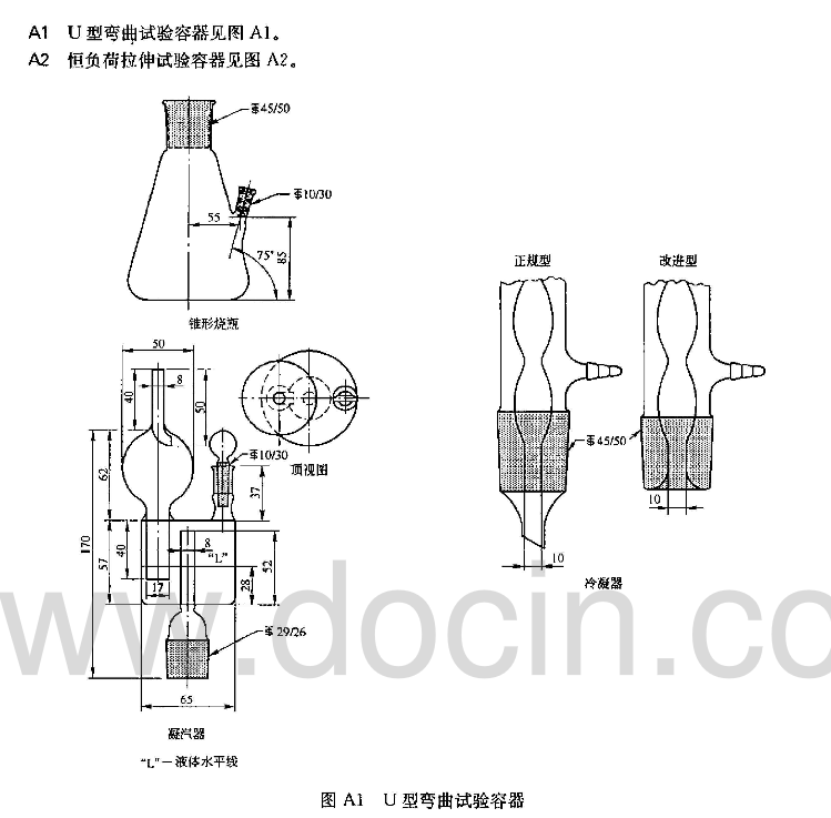 試樣方法概述:1)將預(yù)定的試劑級(jí)質(zhì)量的氯化鎂和一些蒸餾水加入一個(gè)容器中。含有試劑的容器裝上溫度計(jì)和冷凝器,放置在熱源上加熱。當(dāng)氯化鎂溶液沸騰時(shí)通過添加少量水或鹽調(diào)整以維持規(guī)定的濃度和沸點(diǎn)。2)溶液已穩(wěn)定在試驗(yàn)要求的沸點(diǎn)后,加入應(yīng)受力的試樣。根據(jù)試驗(yàn)示意圖,試樣要周期性檢齊。如果試驗(yàn)過程超過7天,溶液要更換或建議采用相似的試驗(yàn)裝置。